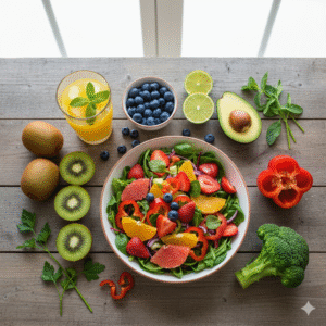 Çilek, kivi ve brokoli gibi C vitamini açısından zengin besinler, cildin sağlıklı kalmasına yardımcı olan önemli antioksidanlar sunar.