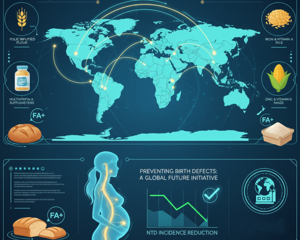 “Güvenli ve etkili besin zenginleştirilmesi yoluyla spina bifida ve diğer NTD dahil olmak üzere mikro besin ögesi eksikliklerinin ve bunların sonuçlarının önlenmesi çabalarının hızlandırılması” için kararlılıklarını beyan etmişlerdir. Hazırladıkları rapordaysa “gizli açlık” olarak belirtilen temel vitamin (folat ve A vitamini) ve minerallerin (demir ve çinko) eksikliğinin önemini belirtmişlerdir. Ayrıca besin zenginleştirme sağlık, ekonomik ve sosyal faydaları kanıtlanan maliyet-etkinlik stratejisidir.