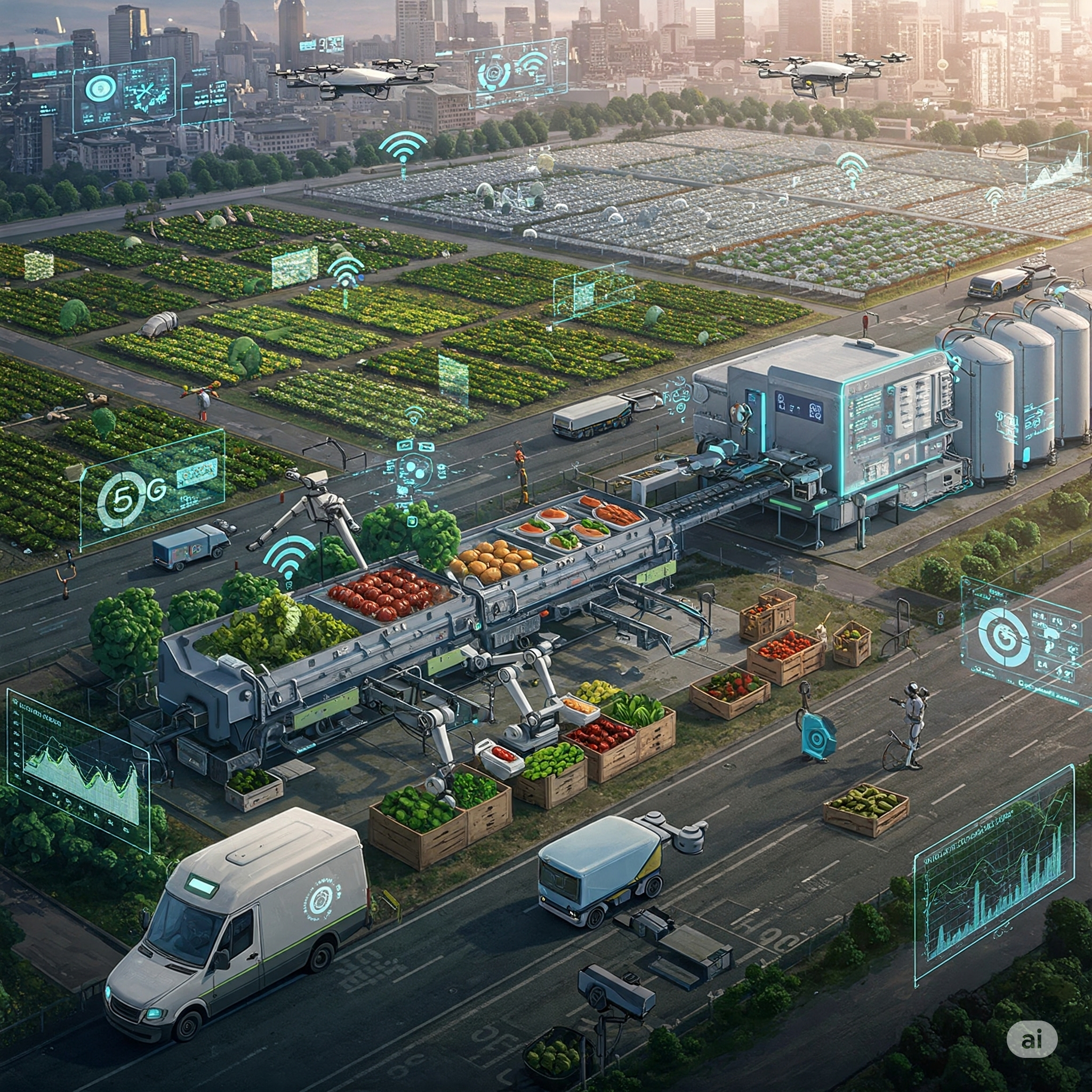 Beşinci nesil ağlar (5G teknolojisi) hızlı veri aktarımıyla çok çeşitli uygulama ve süreçlerde otomasyonu ve hassas kontrolü sağlar. Gıda endüstrisinde 5G teknolojisinin en önemli uygulamalarından birisi tedarik zinciri lojistiğidir. Böylece 5G, gıda tedarik zincirinden ve çeşitli konumlardan aldığı verileri gerçek zamanlı analiz eder. Ayrıca ulaşım rotalarının optimizasyonu sağlar ve uçtan uca lojistik otomatikleşir. Bu teknoloji yapay zeka destekli olduğundan işleme ve üretimde otomasyonu kolaylaştırıp izlemeyi geliştirebilir. Dahası bakım gereksinimlerini tahmin etme, güvenilirliği artırma ve kalite kontrolünü oluşturma gibi yararlar sağlar. Sonuç olarak, bağlantı ve veri alışverişinde sorunsuz ortam, daha iyi üretkenlik ve ürün veriminde artış beklenir.