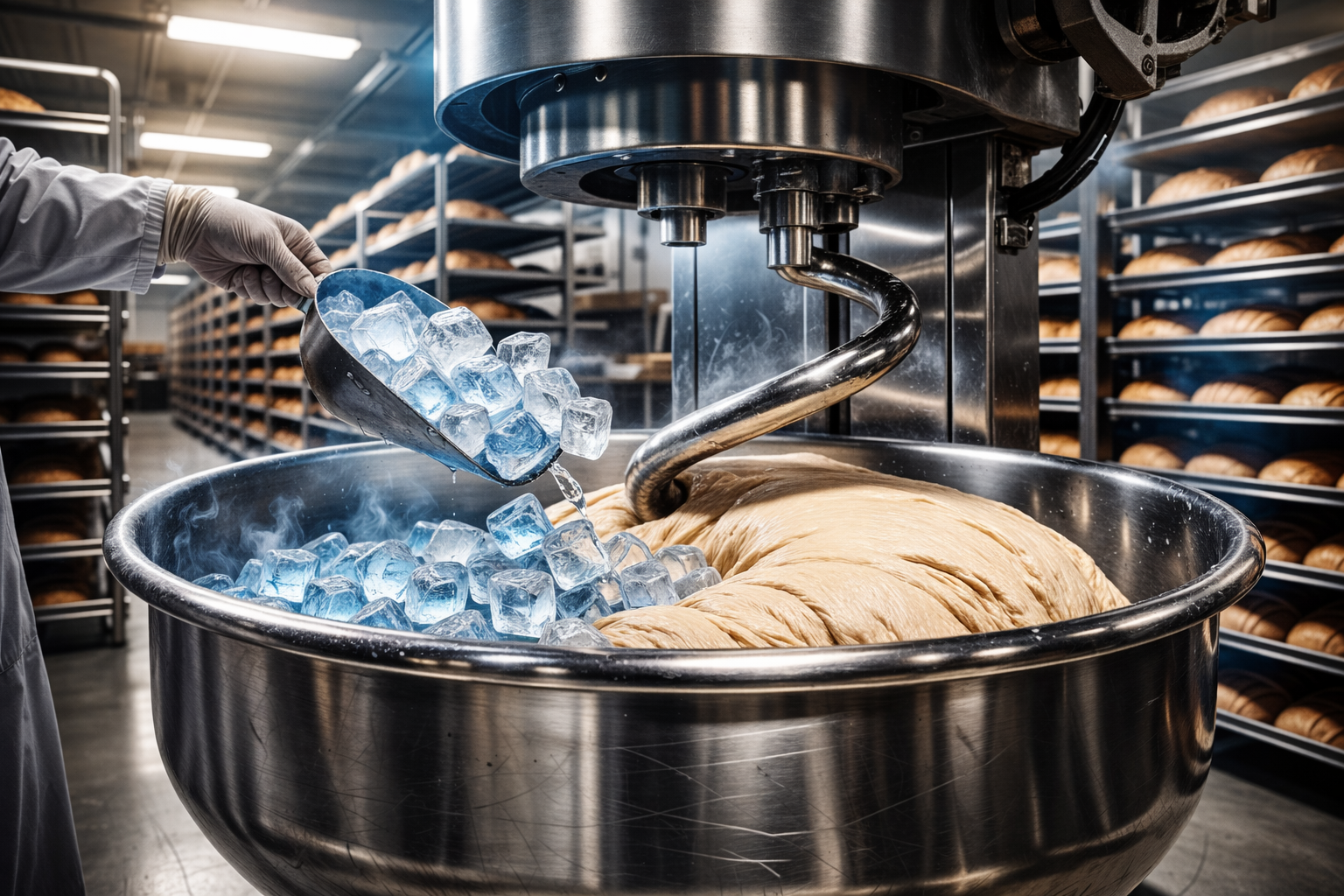 Endüstriyel ekmek üretiminde hamur reçetesine buz eklenmesi, üretim sürecinin kontrolü açısından önemli bir uygulama olarak kabul edilmektedir.
