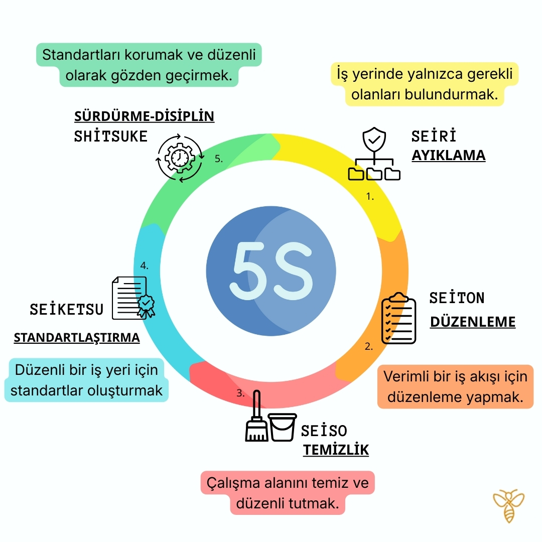 Ancak 5S, sadece fiziksel bir düzenleme sistemi olarak değerlendirilmemelidir. Bu yaklaşım, aynı zamanda çalışan alışkanlıklarını ve iş yapma biçimlerini dönüştüren bir yönetim aracıdır.
