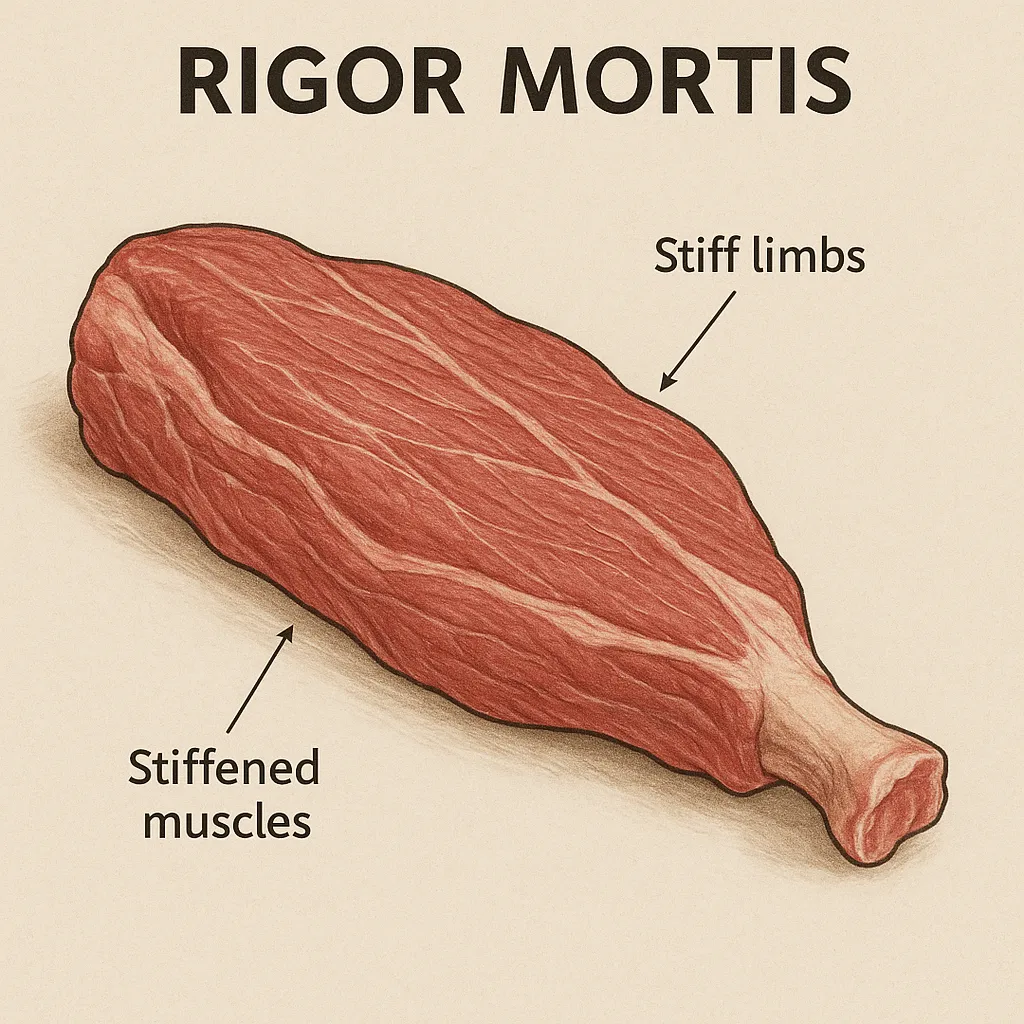 - Ölüm Anı (Pre-rigor Dönemi): Kaslar hâlâ yumuşaktır. Bu dönemde kesilen ve hemen tüketilen etler, su kaybı ve lezzet açısından yetersizdir.